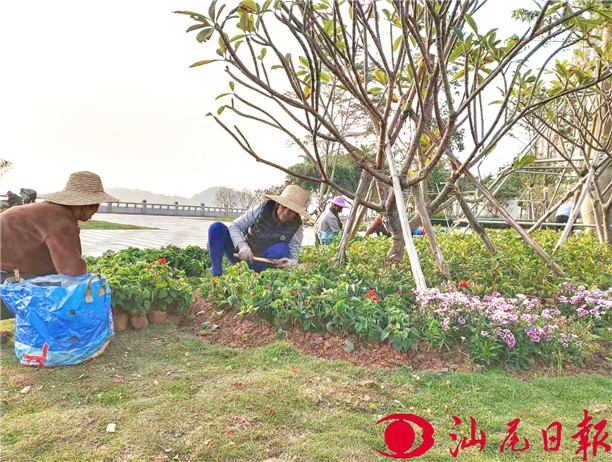 114早上7時,園林工人在市區海濱大道種花。記者在現場看到,工人一邊種花,一邊清除雜草垃圾,美化環境。廣大市民為園林工人的辛勤付出點贊。