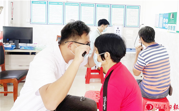 10月4日是傳統節日重陽節。當天,海豐老區醫院組織醫生走進市城區紅草鎮五雅村開展眼科義診活動,為老年人進行眼部檢查,并贈送有關藥物,向老年人宣傳普及護眼知識。圖為醫生為老年人作眼部檢查。