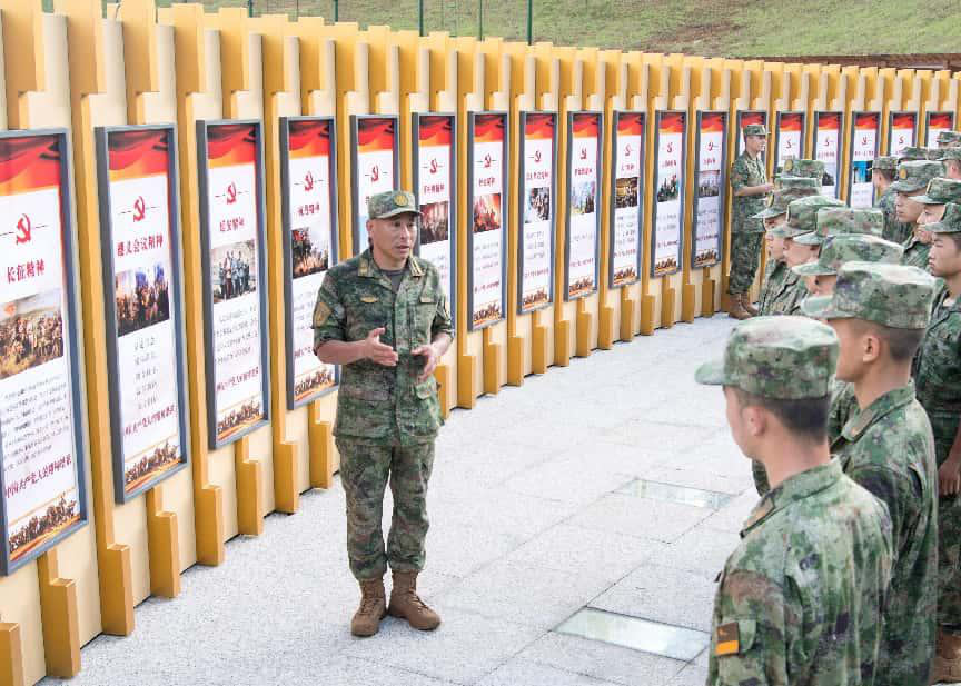 ↑何賢達(左一)在為新兵組織理論授課。宣澤輝 攝