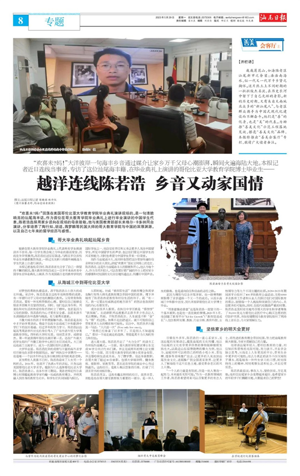 哥大畢業(yè)典禮響起汕尾鄉(xiāng)音