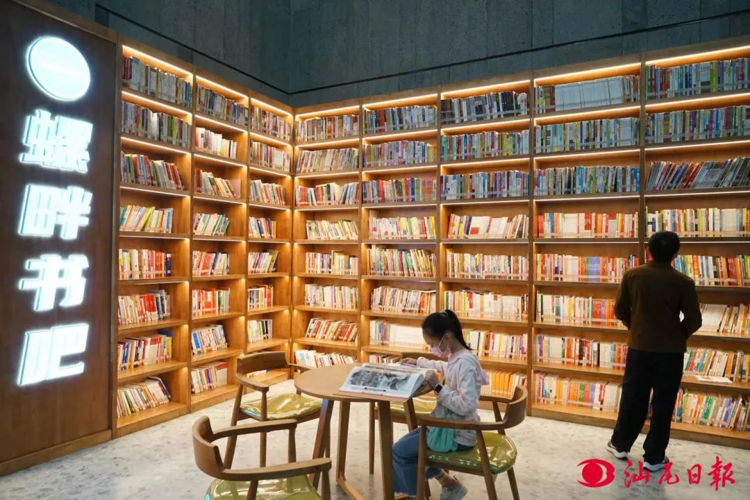 “螺畔書吧”吸引了很多讀者前往閱讀。圖為該書吧一角。