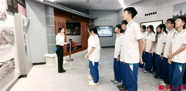 講解員引領(lǐng)學(xué)生們參觀學(xué)習(xí)拒毒防毒知識(shí)。