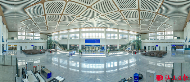 汕尾新建站及高鐵樞紐一體化建設(shè)工程進(jìn)入收尾階段。圖為陸豐東站站房內(nèi)景。