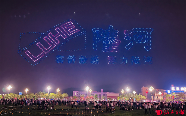 52日晚,由陸河縣委、陸河縣政府、深圳對口幫扶陸河縣工作組主辦,陸河縣委宣傳部、陸河縣文廣旅體局聯合承辦的“客韻新城 活力陸河”2025年“五一”無人機表演秀震撼上演,為“五一”假期增添節日氛圍,豐富民眾的節日文化生活。