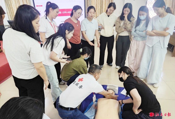 教師們在學習心肺復蘇術。