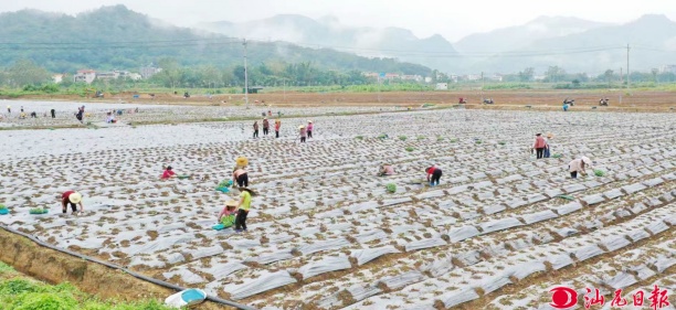 河田鎮(zhèn)河北村標(biāo)準(zhǔn)示范種植基地內(nèi),基地工作人員在種植甜桿西蘭花。