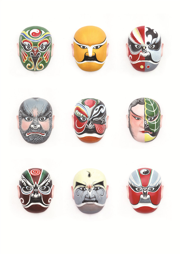 戲劇臉譜歷史悠久,是中華戲劇的傳統標識,海陸豐戲劇臉譜不僅僅是一項制作工藝,其背后有著深厚的歷史淵源。它依托于海陸豐三個國家級非遺項目正字、西秦、白字戲。明初,朝廷在碣石鎮設置衛城,在捷勝鎮設置所城,因官兵多為北方人,故每年均特邀請臺白說中州音韻的正字戲演出,秦腔由官兵帶入與本地戲劇結合形成西秦戲,而白字戲則為海陸豐本土所有。至明中葉,衛、所均需演戲酬神,客觀上促進了地方戲劇的繁榮,形成了“三山”戲臺。在長期的共生共存中,正字戲、西秦戲、白字戲的臉譜互相滲透,互為取長補短,到了明末,經長期磨合之后海陸豐稀有劇種的共用臉譜自然形成、基本定型,達到相需為用、相得益彰的目的。